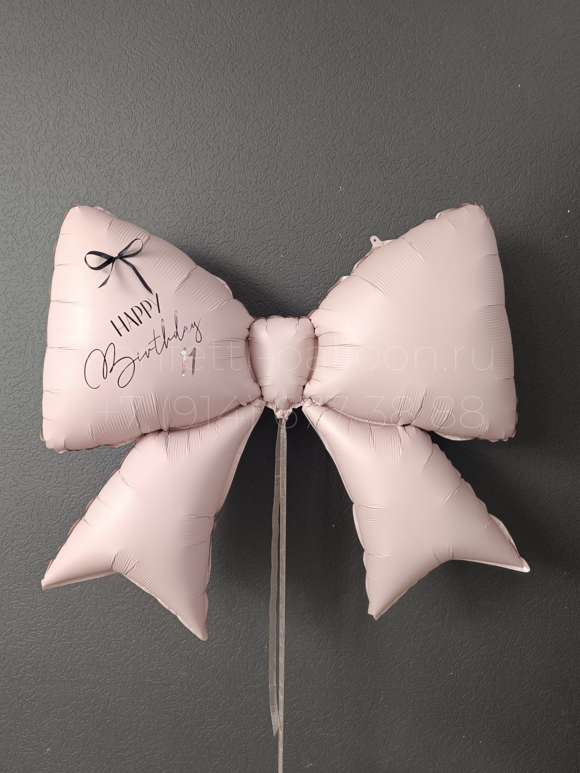 Фигура фольгированная бант с индивидуальной надписью и дополнительным декором бантик из атласной ленты