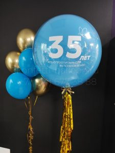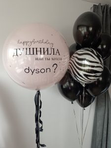 Композиция из гелиевых шаров с креативной надписью и изображением