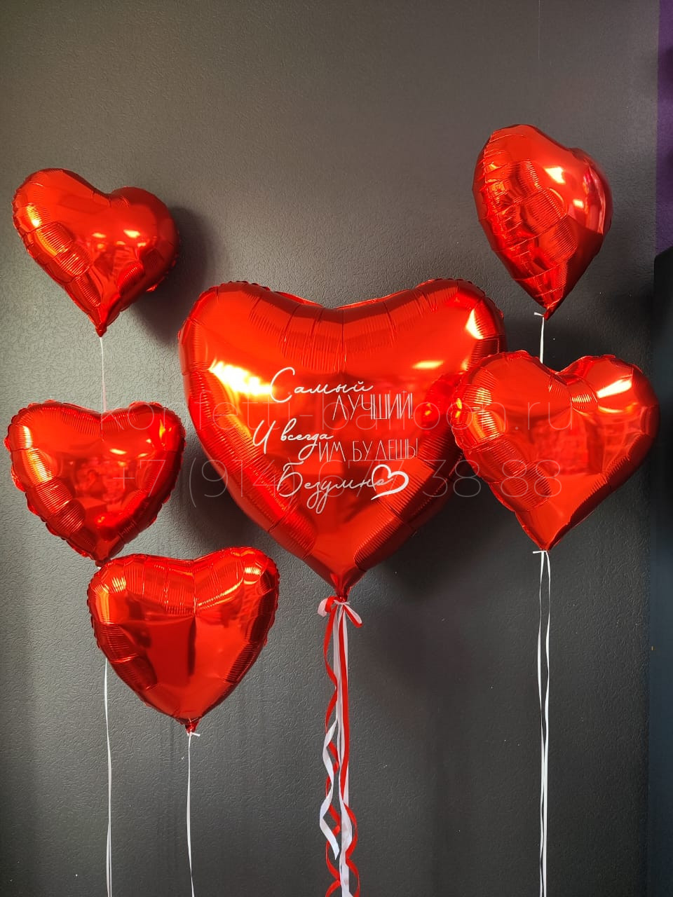 5 сердец фольгированные 45 см, каждое на отдельном грузике