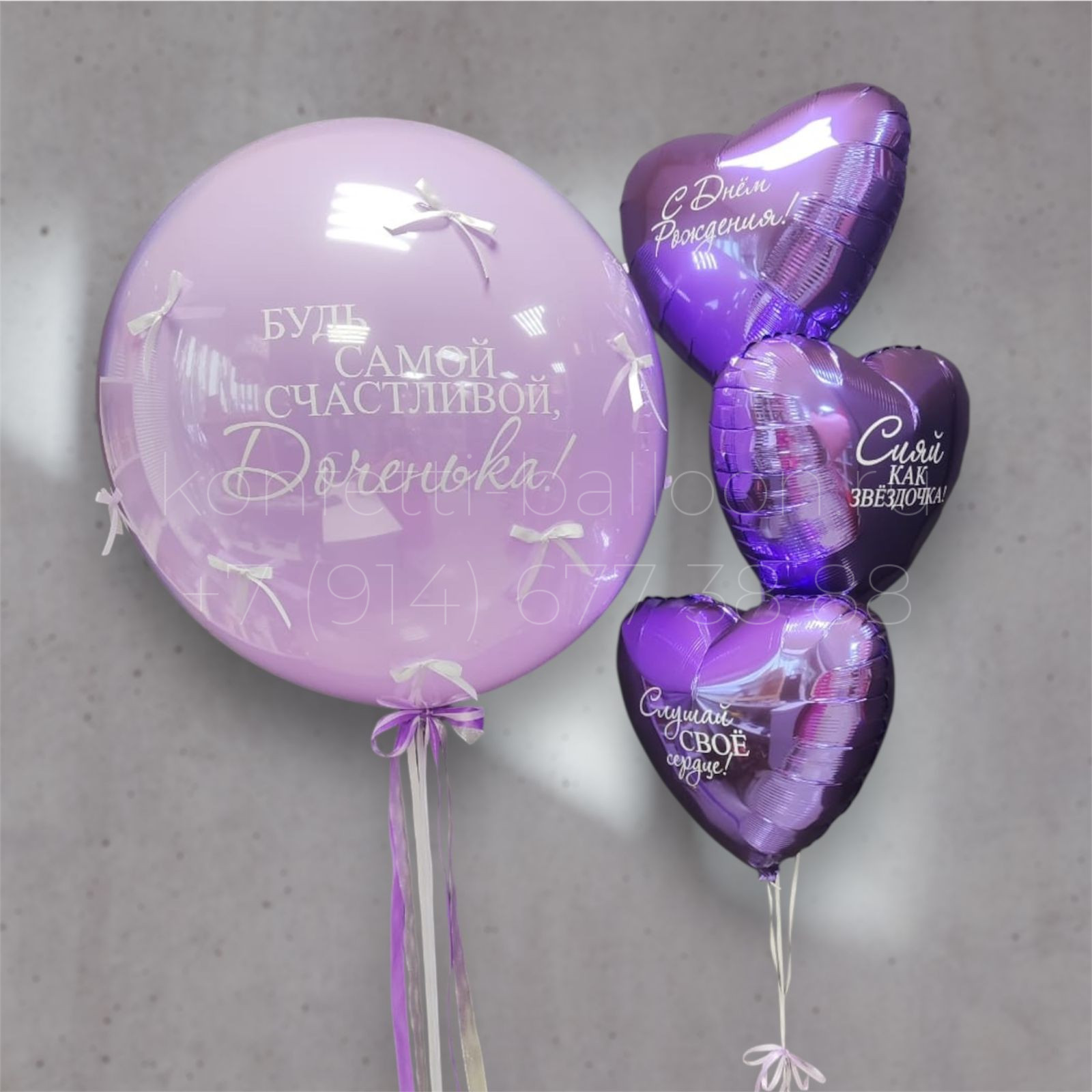 Шар гигант 60-65 см в стеклянной технике с индивидуальной надписью и дополнительным декором бантики из атласной ленты
