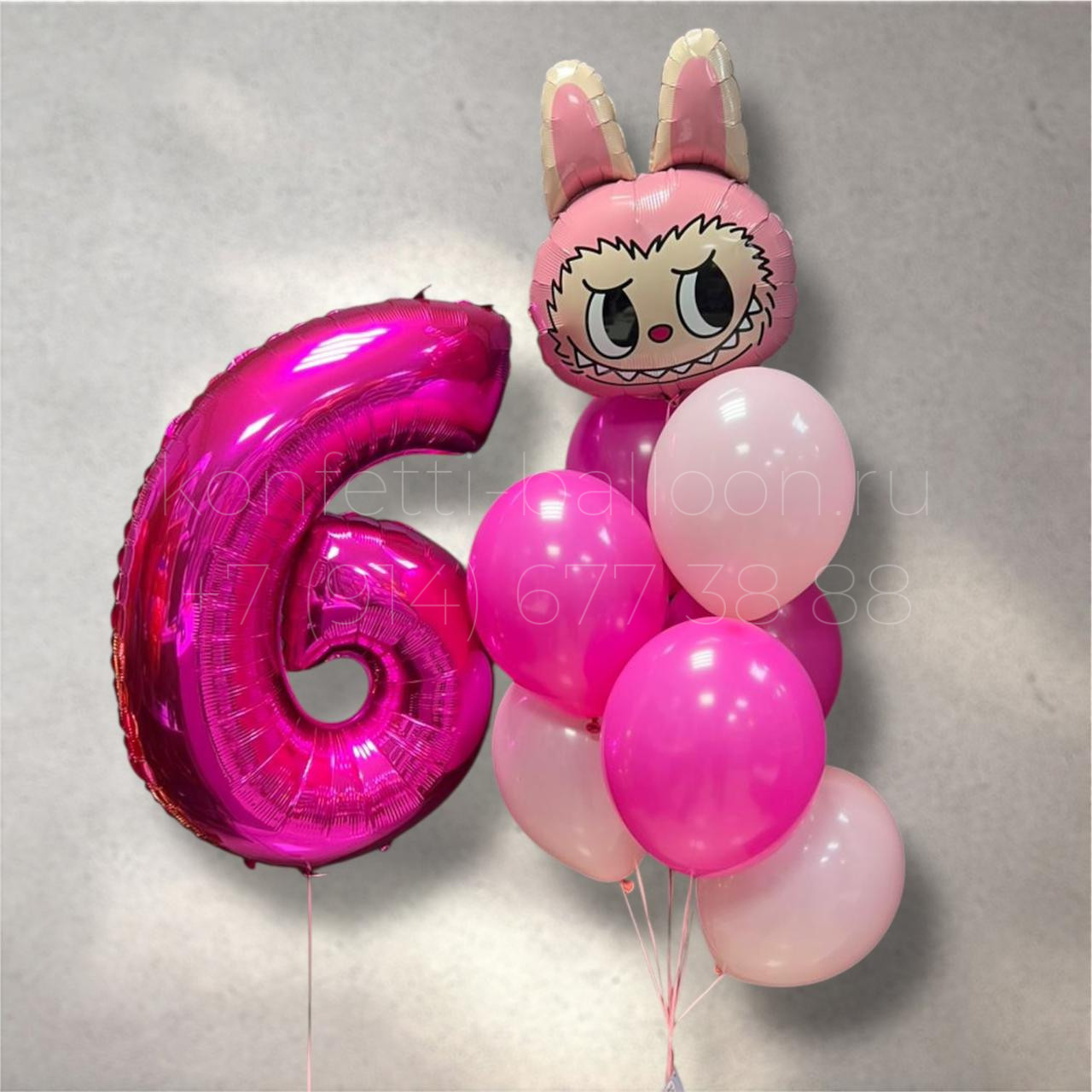 Композиция из гелиевых шаров Лабубу на 6 лет для девочки