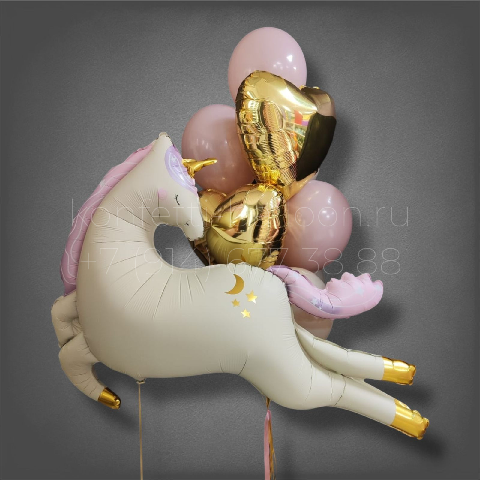 В состав «Композиция из гелиевых шаров с единорогом для девочки» входит: