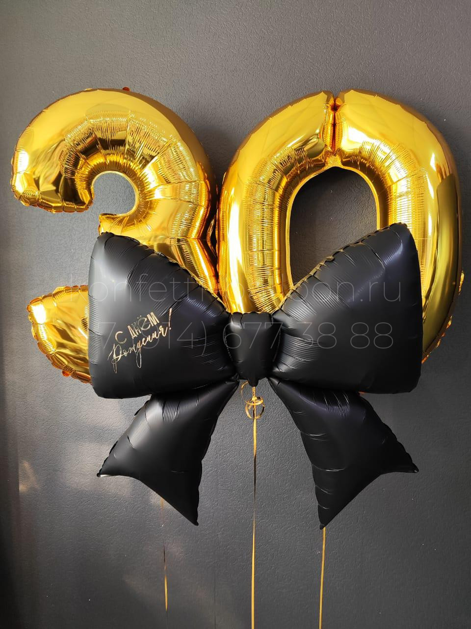 Композиция из гелиевых шаров с бантиком на 30 лет