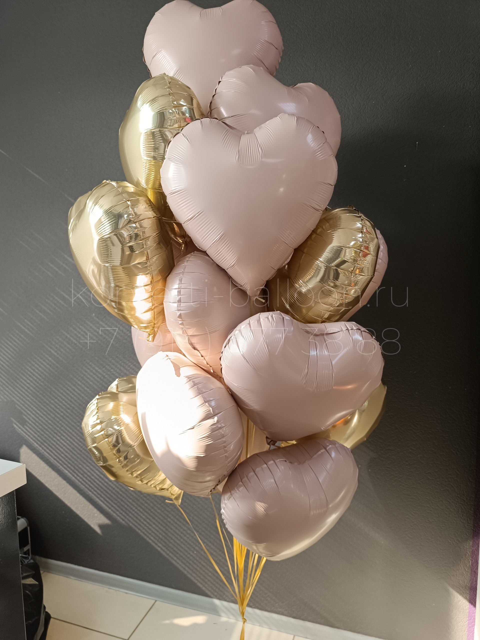 Композиция из гелиевых фольгированных сердец