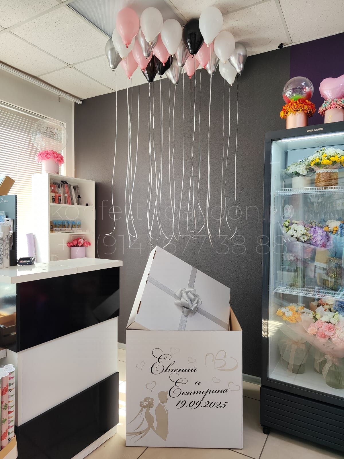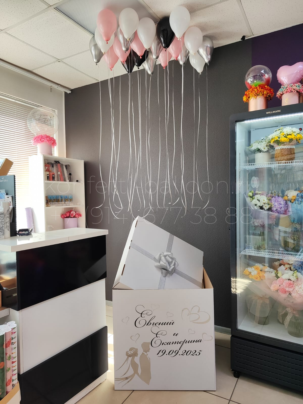 Коробка сюрприз на свадьбу с мини шарами