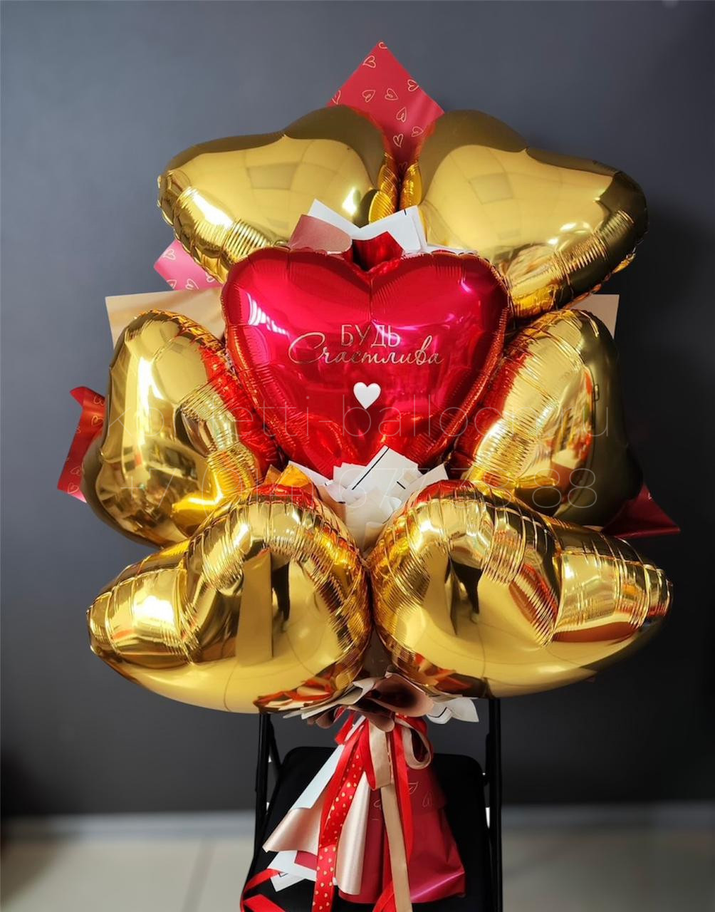В состав «Крафтовый букет из фольгированных сердец размер XL » входит: