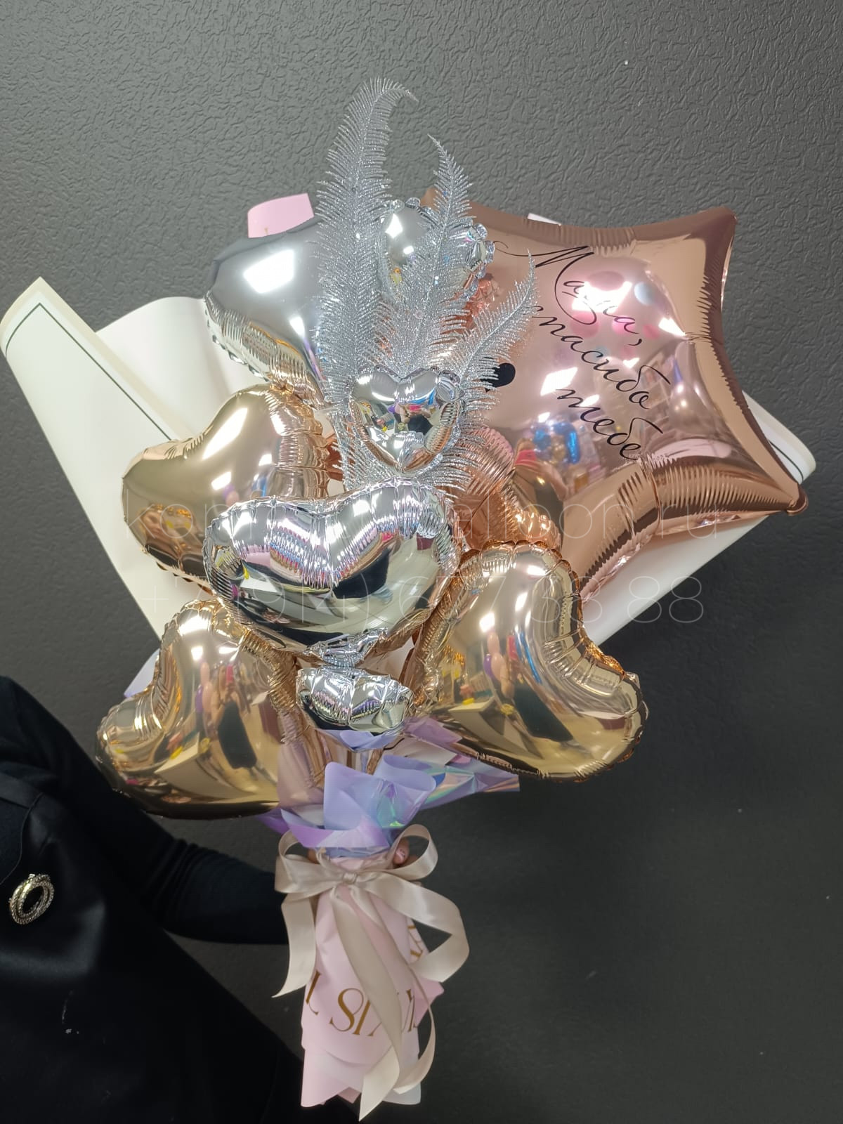 В состав «Крафтовый букет из фольгированных шаров M для мамы» входит: