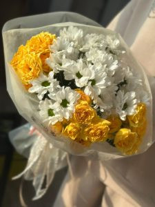 Бумага для упаковки подбирается из актуального наличия по цвету к букету