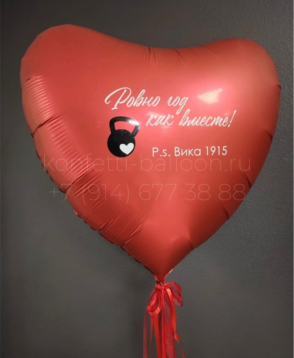 Сердце гигант фольгированное 90 см с индивидуальной надписью на шаре с двух сторон