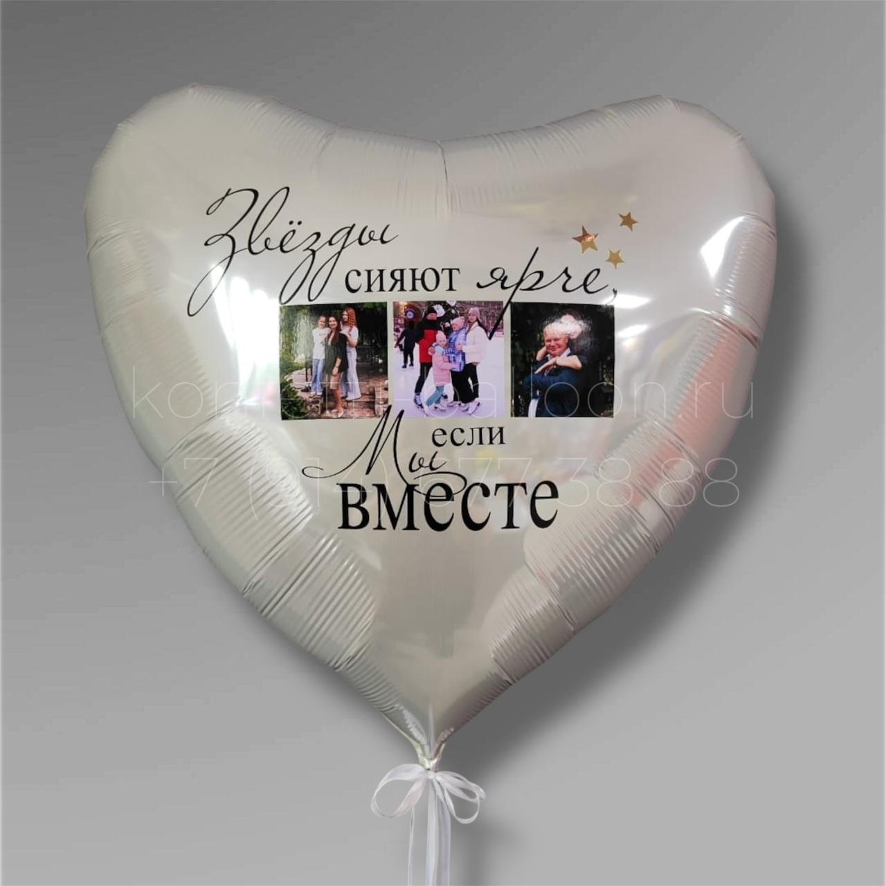 Сердце гигант фольгированное 90 см с фото и индивидуальной надписью