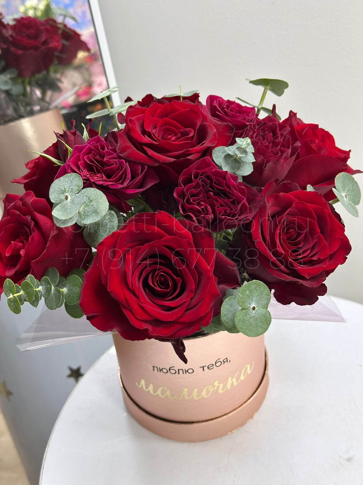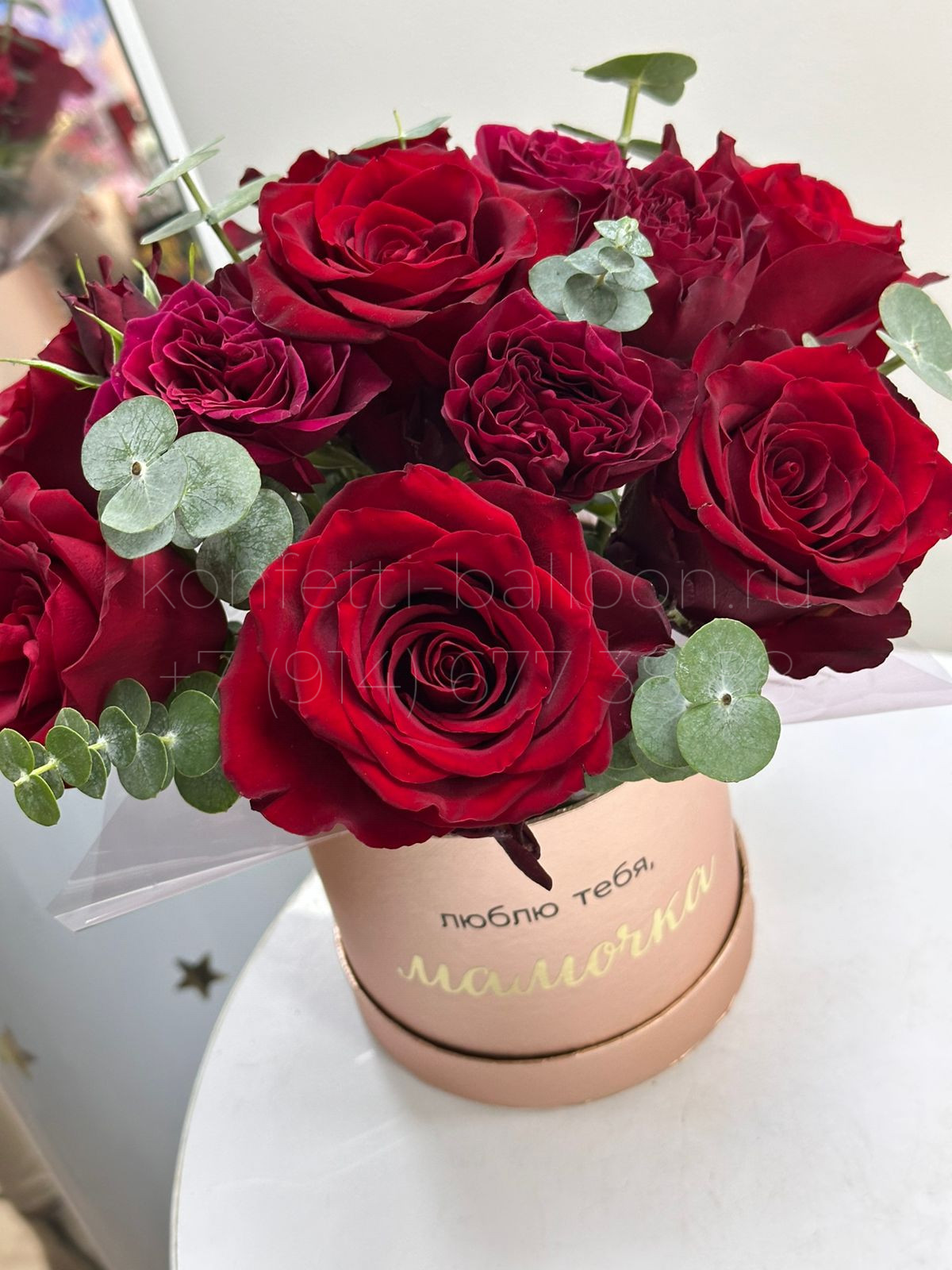 Средний бокс с розами в коробочке и надписью для мамы, на день мамы, на 8 марта и просто так