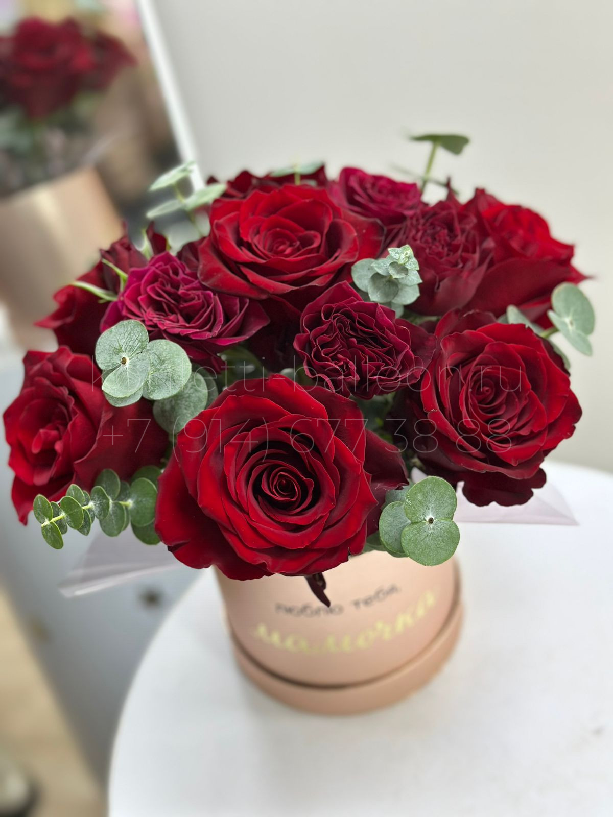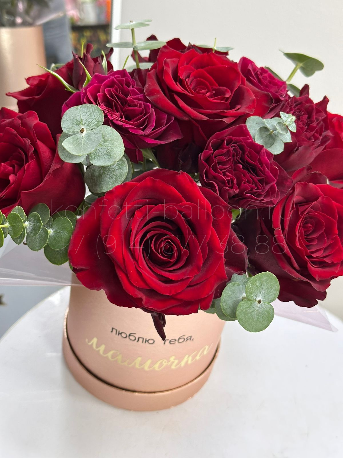 В состав «Средний бокс с розами в коробочке и надписью для мамы» входит:
